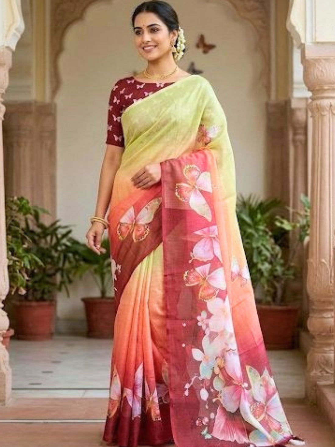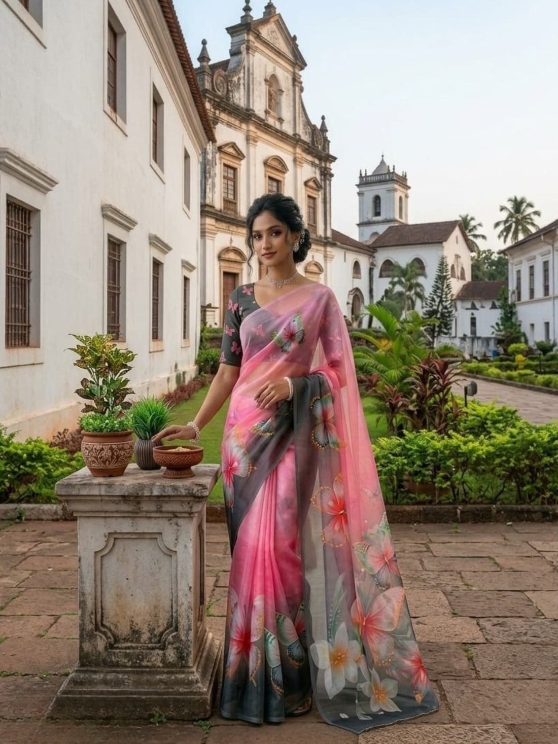 Pink & Charcoal Butterfly Saree