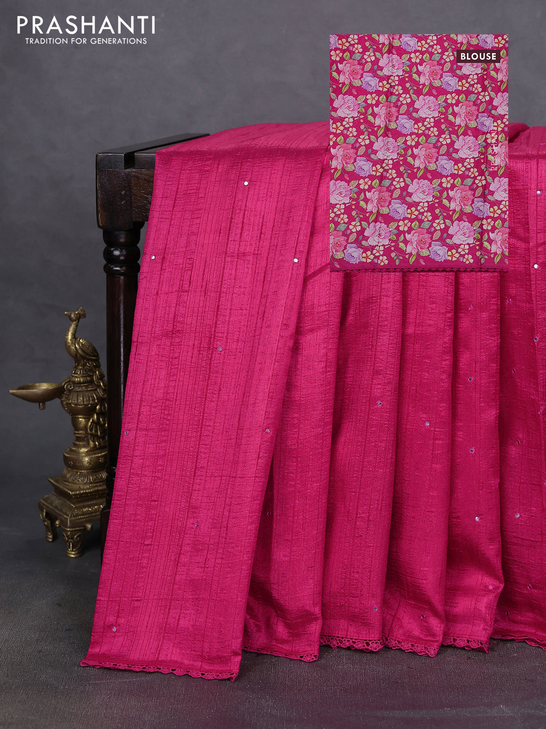 Semi raw silk saree pink with allover mirror work and lace work border